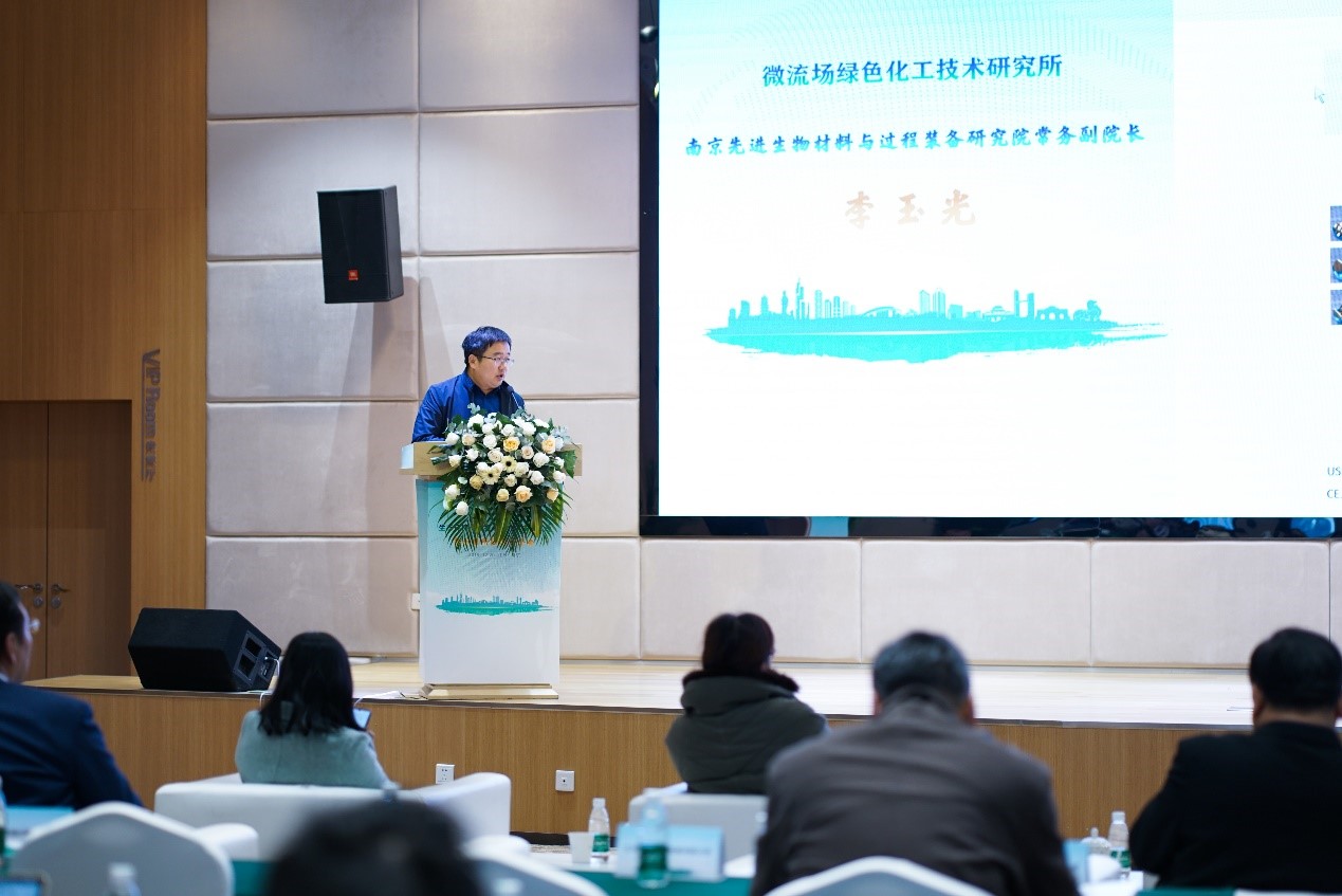 當(dāng)天下午,揚(yáng)子江中心舉辦首批加盟所路演推薦會(huì)。我院代表李玉光副總經(jīng)理上臺(tái)演講并與現(xiàn)場(chǎng)嘉賓深入交流。我院運(yùn)用微流場(chǎng)反應(yīng)技術(shù)有效提升相關(guān)化工過(guò)程的生產(chǎn)安全性和自動(dòng)化程度,提升相關(guān)產(chǎn)品的質(zhì)量,并且節(jié)能減排效果顯著,同時(shí)降低了企業(yè)生產(chǎn)用地,極大地促進(jìn)了江蘇省化工產(chǎn)業(yè)高質(zhì)量發(fā)展,與揚(yáng)子江生態(tài)文明創(chuàng)新中心“政—產(chǎn)—學(xué)—研—用—金”的高水平科技協(xié)同創(chuàng)新平臺(tái)深入融合,并進(jìn)一步發(fā)揮自身優(yōu)勢(shì),落實(shí)長(zhǎng)江經(jīng)濟(jì)帶可持續(xù)發(fā)展戰(zhàn)略部署,服務(wù)揚(yáng)子江生態(tài)環(huán)境保護(hù)修復(fù)和綠色發(fā)展。我院的微流場(chǎng)技術(shù)得到了與會(huì)代表們的一致認(rèn)可和高度評(píng)價(jià)。