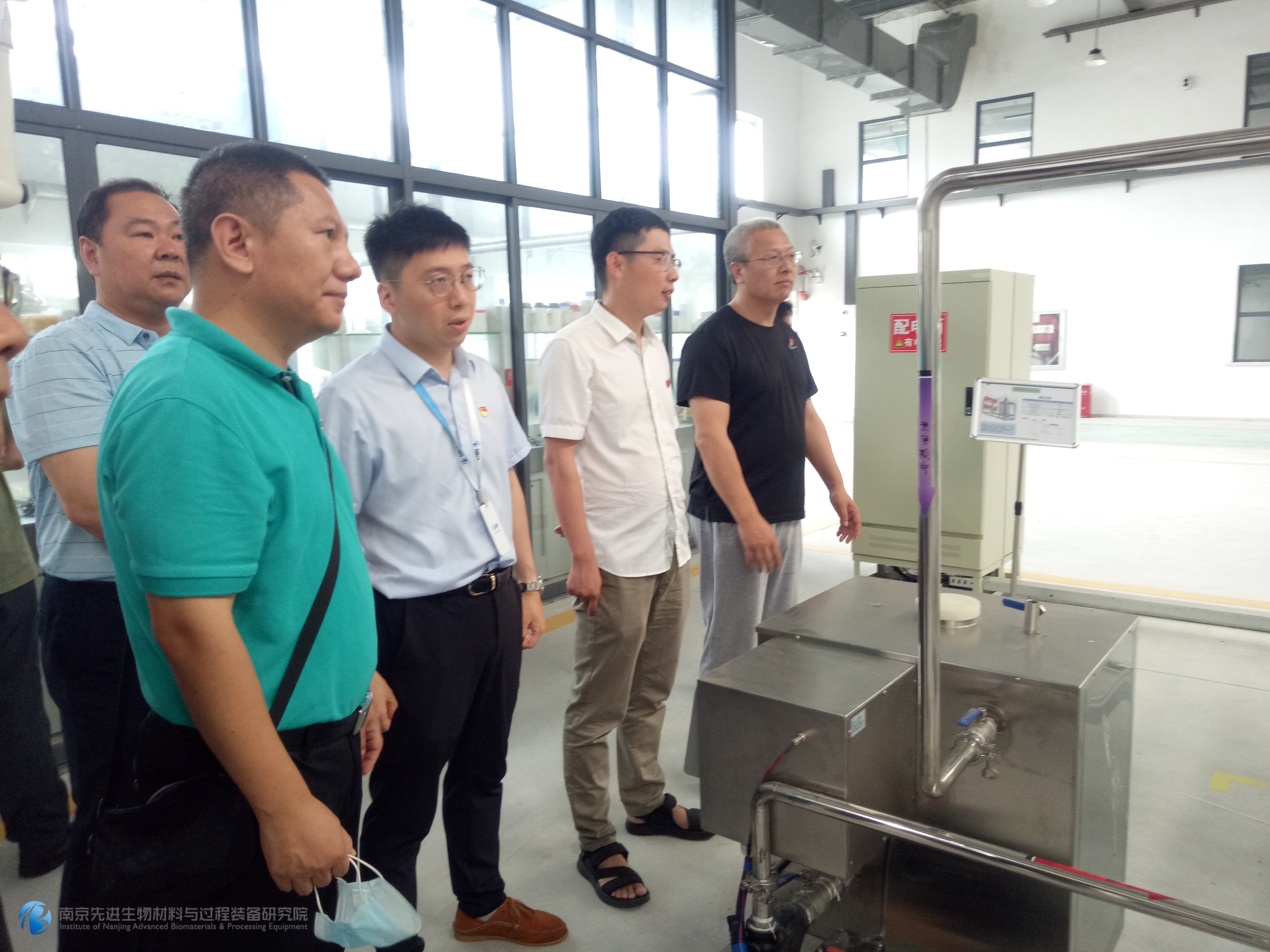 交流會(huì)后,季棟博士帶領(lǐng)大家參觀了研究院展廳、實(shí)驗(yàn)室、中試車間,生動(dòng)詳細(xì)地介紹了微流場(chǎng)反應(yīng)技術(shù)、生物基材料等相關(guān)研究工作,并與劉所長(zhǎng)一行探討雙方后期在項(xiàng)目運(yùn)行以及分析測(cè)試等方面開展合作的可能性。