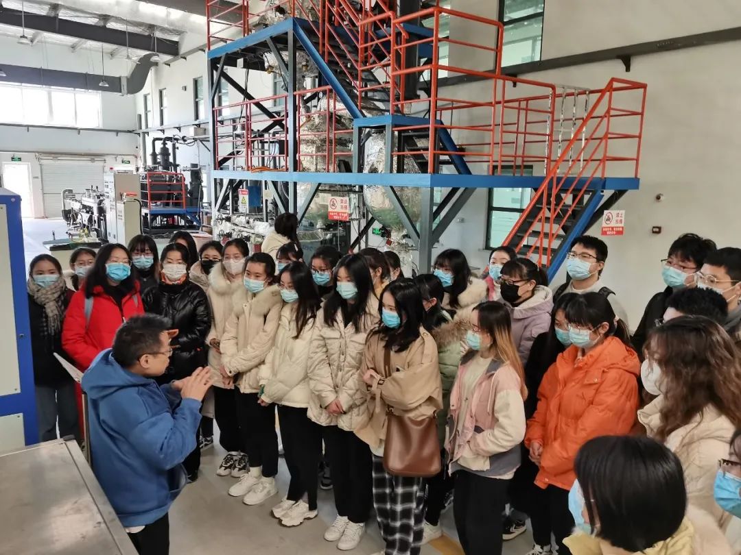 隨后,張楷博士帶老師和學(xué)生們來(lái)到了我院裝備研制中心、工藝開(kāi)發(fā)中心和分析測(cè)試中心,在裝備中試車間,張楷博士介紹了微流場(chǎng)反應(yīng)設(shè)備的構(gòu)造、特點(diǎn)和應(yīng)用場(chǎng)景進(jìn)行了講解。
